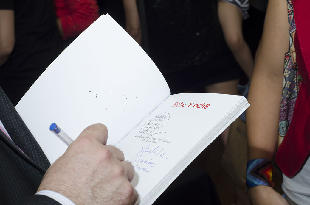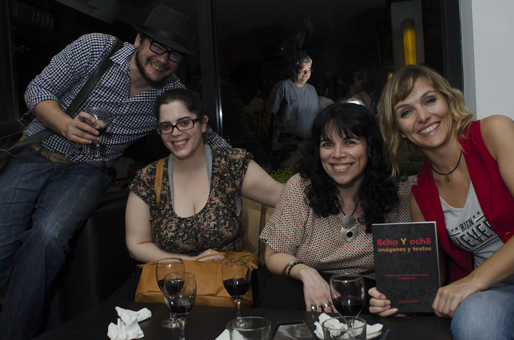 Café del lector en la plaza Jorge Luis BorgesFestejamos el proyecto 8cho y och8 hecho libroSamuel MontalvettiRosa Gravino en el Café del lector en la plaza Jorge Luis BorgesSilvina Gruppo, escritora y co-editora del proyecto 8cho Y och8La escritora Natalia BengocheaSandra Ferrer y Mariana KomiseroffDiego Lazcano, co-editor del proyecto, junto a varios artistasEl escritor Martín Lasalt, de Montevideo, Uruguay, con Silvina GruppoEl ilustrador Horacio PetreNatalia Bengochea junto a Silvina GruppoLa escritora Natalia ZitoIsabel GruppoGilda Manso y Verónica Martínez, escritorasMartín Arangoa, artista visualPadres del artista visual Tomás Menéndez presentes en el Café del lectorLa escritora colombiana Alexandra Salavarrieta junto a amistades presentesJosé María Marcos, escritor y editor de Muerde MuertosEl escritor y poeta Fernando Aíta junto a artistas amigosLos escritores Pablo Roisentul, Fernando Chulak y Ariel PicherskyNatalia ServerMarcela D'Alessandro, Aída Rolando y Alejandra BocquelMariano Marcelo Borobio y la escritora Agustina BazterricaGabriela Liliana Varela, participante del proyectoEl escritor Marcelo GuerrieriEl artista visual Santiago Carlomagno junto a Alix de la Barriere y Fernando AítaSantiago CraigEvangelina Caro Betelú, escritoraEsteban MoscardaAriel Pichersky y Víctor FestaNatalia BengocheaGilda Manso, José María Marcos, Hernán Domínguez Nimo y Marcelo Guerrieri, escritores participantes del proyectoDescentralized Mail Art Congress: Sol Pedrosa, Samuel Montalvetti, Rosa Gravino y Norberto J. Martínez Participantes del proyectoAlejandra Bocquel, Norberto Martínez junto a la escritora y editora del proyecto Silvina GruppoSilvia Lissa, artista visual de Chajarí, Entre Ríos, con Silvina GruppoEl Poeta Fernando Aíta Nicolás Hochman y Javier RodríguezMariano Marcelo BorobioEsteban Moscarda, Gilda Manso, Verónica Martínez y Natalia Zito.Hernán Brignardello, Marcelo Gabriel Guerrieri y José María Marcos.Café del lector en la plaza Jorge Luis BorgesEl artista visual Tomás Menéndez junto a sus padresPablo Roisentul en familia con un grabado y una mini revista Fluxus de las recompensas de la campañaSilvina e Isabel GruppoCristian Godoy, Luciana De Luca y Javier Aragón.Gabriela Varela, Vanesa Pafundo, Cecilia Daltilia y Silvina Gruppo.Daniel Akerman, Charly Martinez Zaracho y Roberto MalvarezSol Pedrosa y Samuel MontalvettiLaura Andreoni, Natalia Ovit, Víctor Festa y Santiago González Lynch, artistas visualesEsteban Moscarda y Fernando Pedernera, escritoresSilvana Castro, Pamela Puertas y Marcela D'Alessandro, artistas visualesCharly Martínez Zaracho, Cristian Alari e Ivana Dadone.Matías Gey, participante del proyectoLas escritoras Ana Vicini, Natalia Gauna y Helga FernándezSandra Ferrer, Mariana Komiseroff, Cristian Godoy, Javier Aragón y amigos.Isabel Gruppo y Víctor Festa, artistas visualesPamela Puertas artista visual La artista Cañadense Rosa GravinoEl ilustrador Horacio Petre Norberto José MartínezSe firmaron ejemplares en el Café del lector en la plaza Jorge Luis BorgesIsabel Gruppo y Santiago Gonzáles Lynch, artistas visualesSamuel Montalvetti, artista visualSilvina GruppoLa artista visual Rosa Gravino intercambió dedicatoria con Horacio PetreNatalia Ovit, artista visualEl artista visual Víctor FestaDiego Lazcano dedicó ejemplares a los amigos presentes