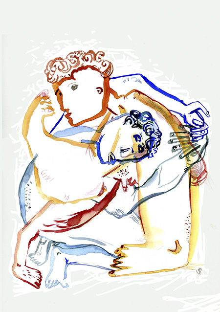 Sintió un intenso olor a culo. Su nariz rozaba el ano y su boca abierta encajaba perfecta en los testículos. Un segundo antes lo había estado mirando fijo a los ojos, un empujón fue la fugaz transición a la diapositiva del techo. Su espalda golpeó contra el piso acolchonado. El otro, subido encima de él, formaba esa figura que un tanto por semejanza y otro por convención llamamos 69. Ahí, vulnerable, comenzó a responderse la pregunta ¿cómo llegué a esto? No era la primera vez que peleaban, pero sí la primera que no habían seguido el curso normal hacia la reconciliación. El desvío, un mensaje de ella: tomamos 1 café en 25 d Mayo y Mitre a las 8?. Se imaginaba lo peor. Adivinó. No dio muchas vueltas, que ya era suficiente, que hacía un tiempo que lo venía pensando, y que hacía un tiempo (menos, mucho menos) había conocido a alguien, que no había pasado nada, pero que sentía cosas por él. Siente cosas, pensó, co-sas, y comenzó con las promesas y súplicas de rigor, sostenidas en la incredulidad que da saberlas inútiles. Te vendría bien hacer algún deporte, le aconsejó esa misma noche su hermano. Una noticia en internet proponía “Diez estrategias para salir de la depresión”, la primera aseguraba que cuando nos deprimimos hablamos y nos movemos más lento y para nuestro cerebro la vida pasa en cámara lenta y refuerza la depresión. Para romper ese círculo vicioso hay que hacer actividad física. La depresión es algo contra lo cual se puede luchar. Ser feliz es una opción pero es también nuestro deber. Y el imperativo tuvo eco: le pareció ridícula la idea de sumarse a algún picado, pero no la representación hamsteriana de encerrarse en paredes de vidrio y correr y pedalear en el lugar. Un cartel en la puerta del gimnasio llamó su atención, más precisamente la vestimenta de los de la foto. Al otro día estaba teniendo su primera clase de Lucha Olímpica. Media hora después, acostado en el piso, con los huevos en la boca, ya tenía la respuesta.