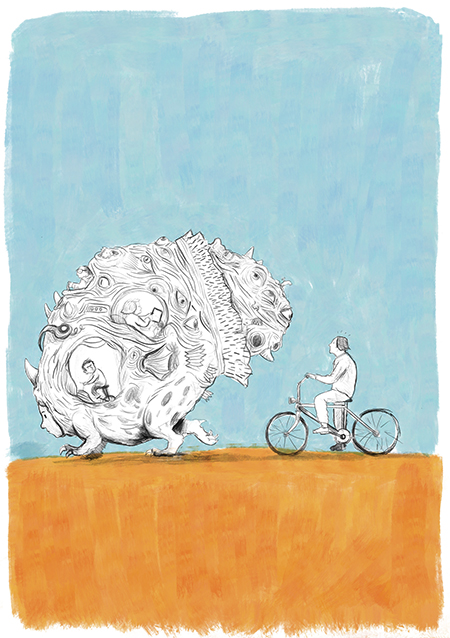 Cada vez que me desnudo en el vestuario, veo la cicatriz que me divide en dos. Y pienso que esa bola sí debe haber sido un alien. Uno de esos bichos marinos que necesitan estar bajo agua para sentirse en hábitat. Para no despertar a potenciales crías sigo nadando. Crol, mariposa, pecho, espalda. Se me ensanchó la espalda y endurecieron los bíceps. Sin embargo, lo que siguió creciendo fue mi panza. El motivo también es líquido. No pasa un día en que no destape una cerveza.