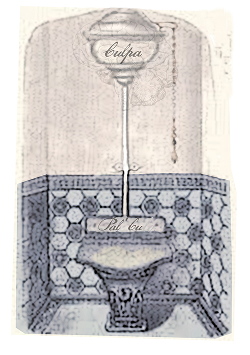 El hombre entra en el baño. Ve a la mujer en la bañera, la sangre en el agua, el vientre hinchado, las lágrimas en la toalla, el libro y la frase “Tu culpa” escrita en el espejo. Abre la canilla y mira correr el agua. Toma la navaja, la afila.