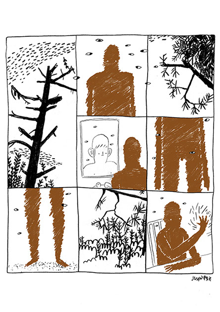 De niño, dibujaba accidentes, tortugas ninja o inventaba monstruos junto a su abuelo. Hoy a la mayoría de sus personajes les falta la nariz, algunos se derriten, se estiran o se asustan sin saber de qué. Otros cierran los ojos para dar lugar a lo que expresan (casi siempre es una cita o el verso de una poesía). El océano por donde navega Pez tiene grandes cuotas de oscuridad. Sus ilustraciones se distinguen por un trazo único y sencillo. Publica en Argentina, Colombia, Perú y España. Juan Pez Web